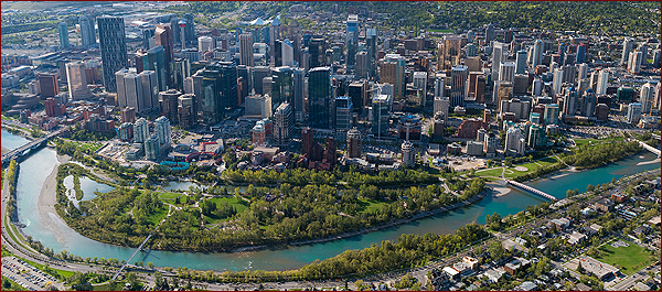 Calgary is a city in the Canadian province of Alberta. It is situated at the confluence of the Bow River and the Elbow River in the south of the province, in an area of foothills and prairie, about 80 km east of the front ranges of the Canadian Rockies. The city anchors the south end of what Statistics Canada defines as the "Calgary-Edmonton Corridor".
